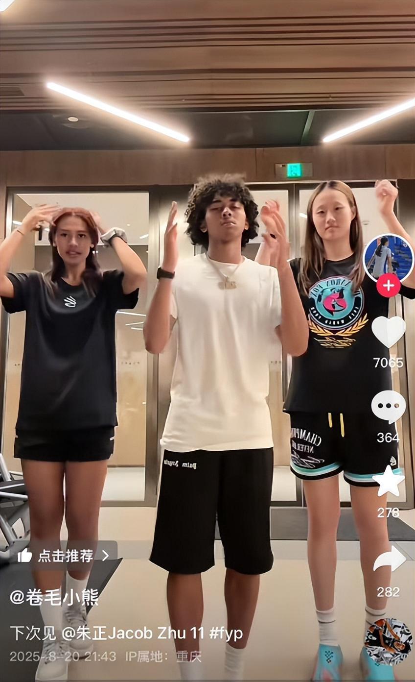 在这次中国行中,朱正竟然和广东女篮的混血前锋张紫玥玩儿到了一起,两人和另一名在美国打球的女将邹雨菲一同在镜头前跳舞,不得不让人感叹,黑人球员的舞蹈基因真强大。